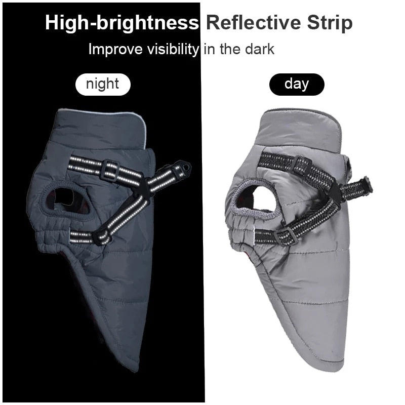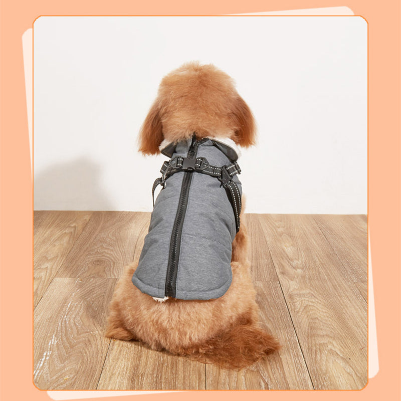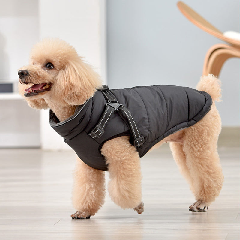 Wasserfeste Jacke. Gut geeignet für die kalten und nassen Tage. Mit integriertem Geschirr für einen angenehmen Komfort deines Lieblings.